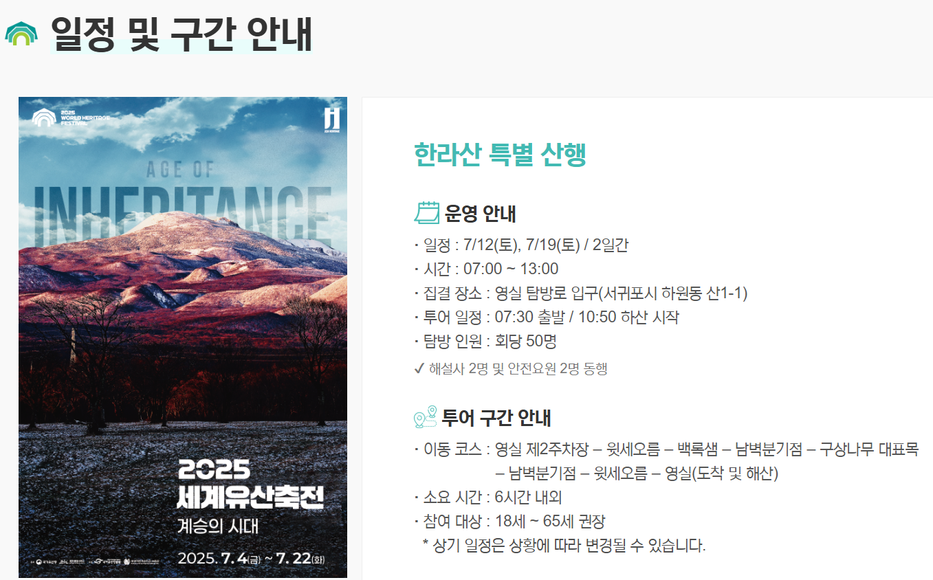 한라산 백록샘 특별 공개를 위해 사전 예약은 필수입니다. 이번 행사는 공식 홈페이지를 통해 진행되며, 신청자가 100명을 초과할 경우 선착순으로 확정됩니다. 예약은 아래 단계를 따라 진행하시면 됩니다.